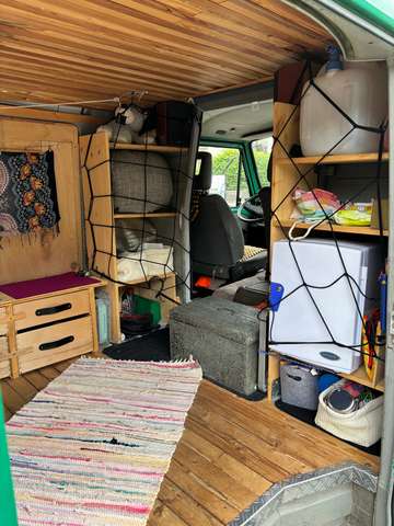 Der Innenraum wurde über die Jahre liebevoll von mir selbst ausgebaut. Es wurde viel Wert auf natürliche Materialien gelegt, mit hochwertiger Holzverarbeitung und Dämmung aus Hanfwolle.