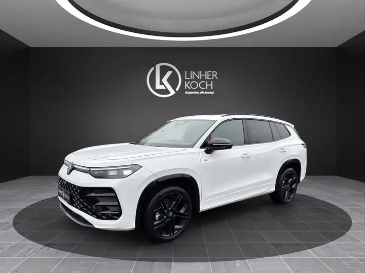 Navigationsfunktion, Ausstattung R-Line, Außenspiegel mit Umfeldleuchte und Projektionsfunktion, Bordwerkzeug und Wagenheber, Dachhimmel Stoff, schwarz, Digital Cockpit PRO (Instrumentenanzeige digital), Einstiegsleisten vorn (Aluminium), Fahrerlebnisschalter inkl. Innenraumerlebnis Atmospheres, Fußgänger-Schutzmaßnahmen erweitert, Fußmatten Textil, Gepäckraumboden höhenverstellbar, Innenausstattung: Dekor-Set R-Line, durchleuchtet, Lendenwirbelstützen vorn, pneumatisch verstellbar, Mittelkonsole Standard, Parkbremse elektrisch mit Auto-Hold-Funktion, Pedale Edelstahl, Radstand Standard, Reifen-Reparaturkit (Tire Mobility Set), Schadstoffarm nach Abgasnorm Euro 6e, Sitzbezug / Polsterung: Stoff R-Line, Sitze vorn höhenverstellbar, ErgoActive Sitz links, Sitze: Komfortsitze vorn, Sitzlehne vorn rechts umklappbar, Sonnenblenden mit Spiegel (beleuchtet), Steckdose 12V im Koffer-/Laderaum, Steckdose 230V im Gepäckraum, 12V-Anschluß Mittelkonsole vorn, Verbandkasten, Warndreieck und Warnweste(n), Vorbereitung für Alkohol-Wegfahrsperre (Alcolock), VW Logo vorn / hinten, Leiste zwischen Scheinwerfer / Rückleuchten beleuchtet mit Animation, Warnanlage für Sicherheitsgurte vorn und hinten, 3.Sitzreihe mit Einzelsitzen (2 Sitzplätze), Assistenz-Paket IQ.DRIVE, Fahrassistenz-Paket: Travel Assist, Emergency Assist und Lane Assist, Insassen-Schutzsystem proaktiv, Design-Paket Black Style, Außenspiegel schwarz lackiert, Stoßfänger R-Line mit Zierleisten schwarz glänzend, Innenausstattung: Designelemente in Schwarz / Dark Anodized, Family-Paket, Kindersicherung im Fahrgastraum elektr. betätigt, Kindersicherung im Fahrgastraum, Gepäckraum-Abtrennung (Netztrennwand), Infotainment-Paket Discover Pro Max, Sprachassistent IDA und elektronische Sprachverstärkung, Mobiltelefon Schnittstelle Comfort mit kabelloser Ladefunktion für 2 Geräte (15 Watt), Navigationsfunktion, Seitenscheiben und Heckscheibe Verbundglas, hinten abgedunkelt, Seitenscheiben geräuschdämmend (Verbundglas), Reserverad als Notrad (gewichts- und platzsparend), Frontscheibe Verbundglas, drahtlos heizbar, infrarot-reflektierend, geräuschdämme