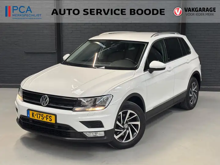 Keurige VW Tiguan met de 125 pk-sterke 1.4 turbomotor, in combinatie met een handgeschakelde 6-versnellingsbak. Deze Tiguan in de Sound-uitvoering is onder andere voorzien van een touchscreen navigatiesysteem met aanvullend ook ondersteuning van Apple Carplay + Android Auto, parkeersensoren voor + achter, adaptieve cruise control, climate control (voor + achter), 17 inch two-tone lichtmetalen velgen, verwarmbare voorstoelen, en een trekhaak.