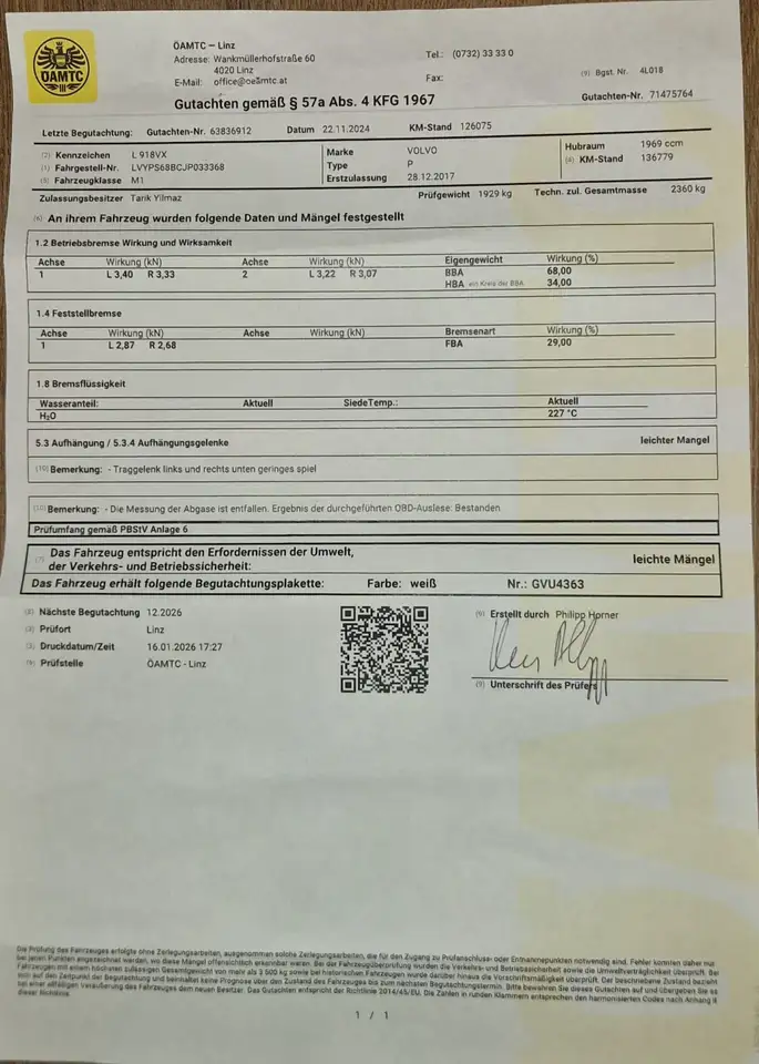 Das ÖMTC Pickerl wurde in den letzten 2 Jahren regelmäßig durchgeführt, ohne Beanstandungen.